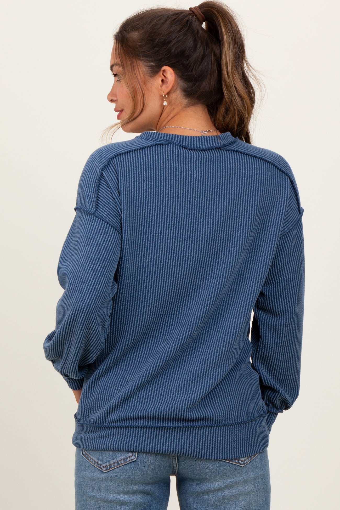 Navy Ribbed Knit Front Pocket Maternity Pullover
