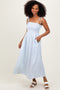 Navy Scallop Trim Shoulder Tie Maxi Dress