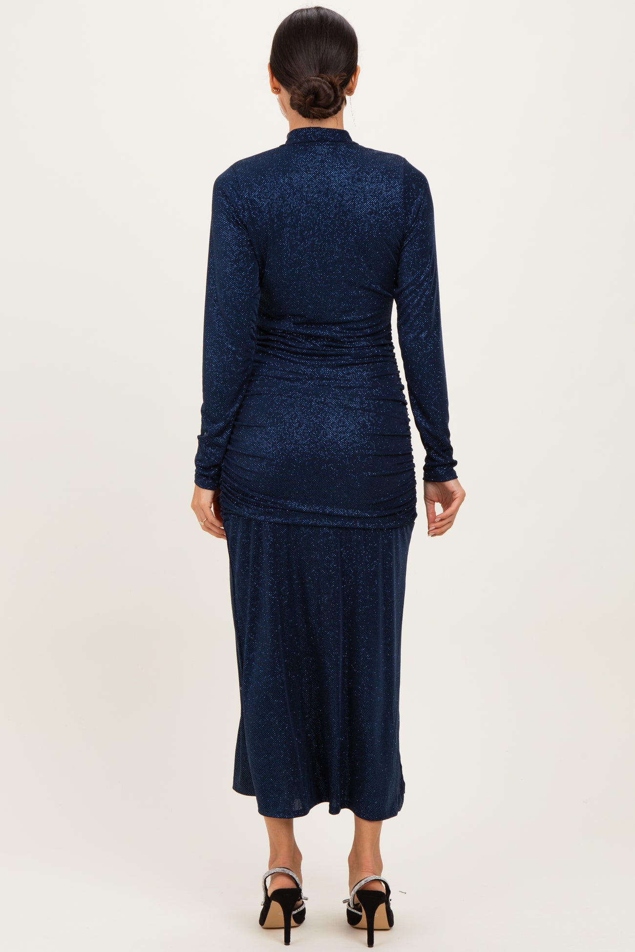 Navy Sequin Long Sleeve Mock Neck Maxi Dress