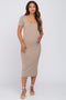 A sold off shoulder maternity maxi dress with crossover smocked bust and ruffle accent tiered skirt. Dress is partially lined.