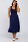 Navy Smocked Ruffle Strap Maternity Midi Dress