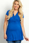 A maternity sweater romper with a collared neckline and button accent in front. Also includes two large side pockets.