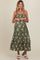 Olive Floral Square Neck Smocked Maternity Midi Dress