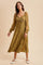 Olive Lace Jacquard Long Sleeve Midi Dress