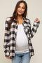 Olive Raw Edge Trim Maternity Drawstring Hoodie