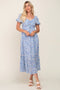 A floral maternity babydoll dress featuring a v-neckline, short flutter sleeves, a ruffle hem and double lining.