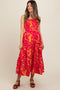 Orange Floral Smocked Waist Midi Dress