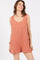 A solid romper with a back cutout and two side pockets with button detail. Double lined.