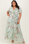 Peach Floral Contrast Stripe Shoulder Tie Midi Dress