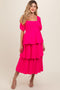Peach Floral Puff Sleeve Plus Maternity Midi Dress