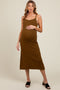 An ultra-soft knit maternity top featuring a rounded neckline and short dolman sleeves with adjustable drawstring ties.