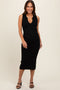 A floral maternity midi dress featuring short sleeves, a notched collar, v-neckline, a smocked waist, a gathered bottom tier, and front functioning buttons. Dress is lined 3/4 of the way down.