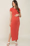 A floral maternity maxi dress with a v-neckline, adjustable straps, and ruffle tier accents. Dress is fully lined.