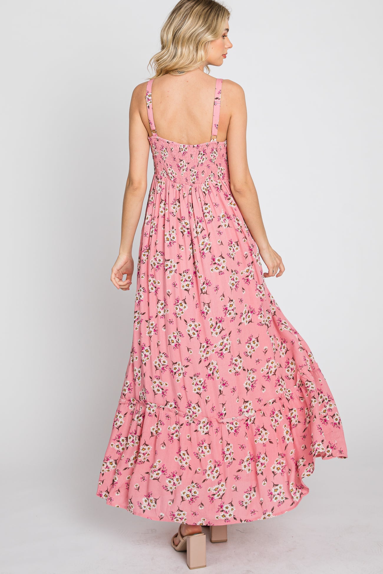 Details A floral print maxi dress with adjustable straps, smocked back, hidden side pockets and ruffle accent hem. Dress is lined. Content + Care