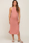 Pink Floral Pleated V-Neck Short Sleeve Maternity Dress
