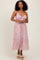 Pink Floral V-Neck Sleeveless Side Tie Midi Dress