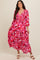 Pink Floral Wrap Front Smocked V-Neck Tiered Midi Dress