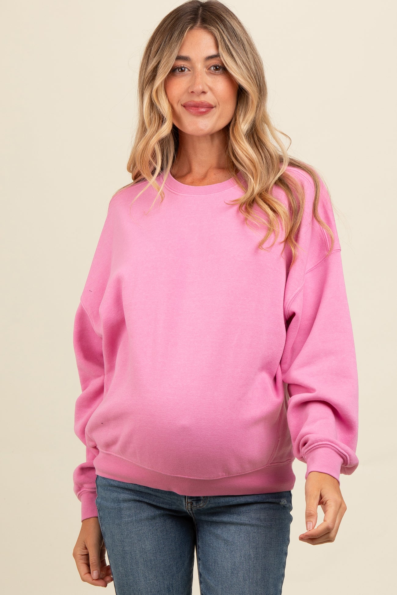 Pink Heather Crewneck Maternity Sweatshirt