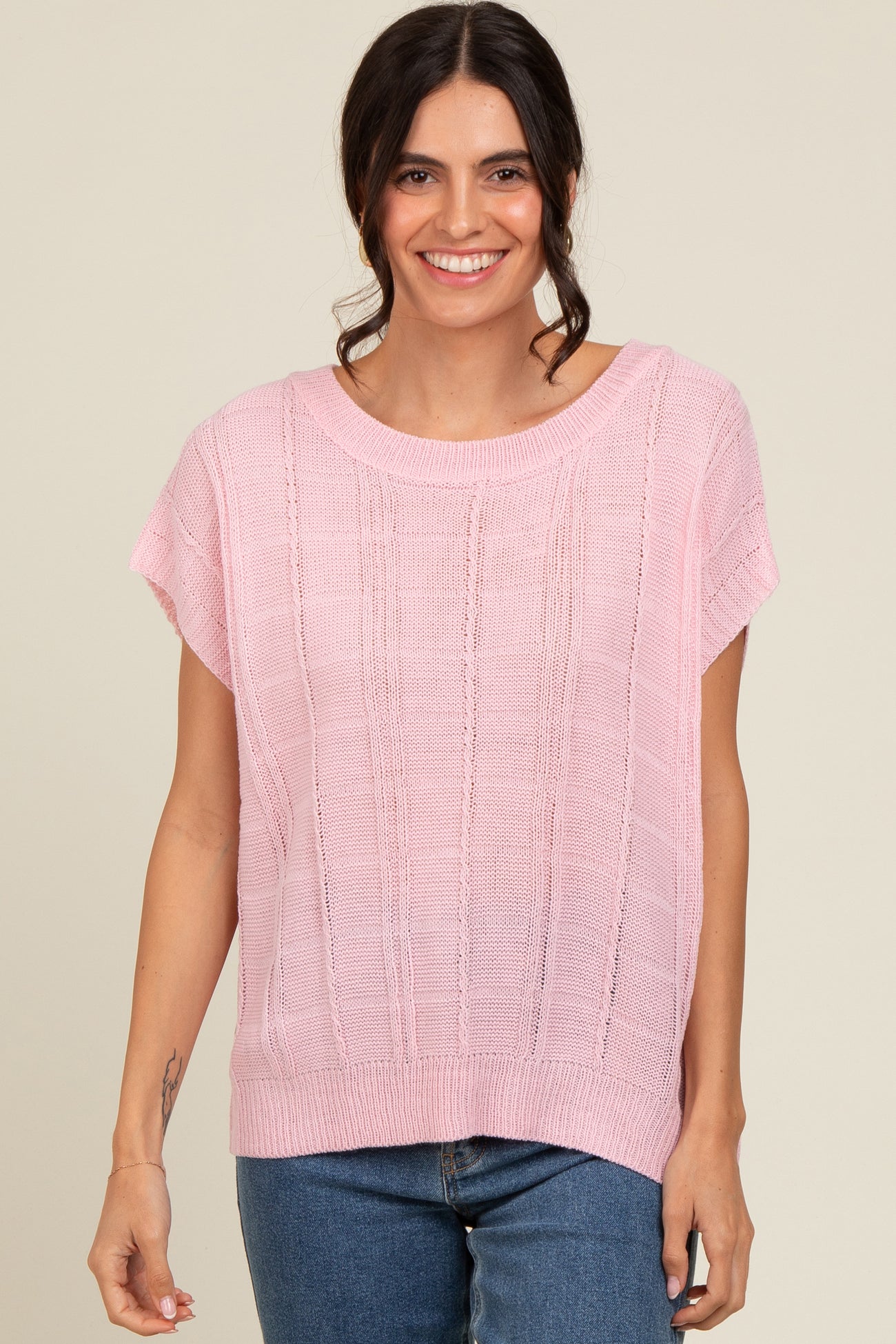 Pink Knit Short Sleeve Sweater Top