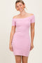 Pink Pointelle Contrast Trim Sweater Midi Dress