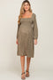 Details A ribbed maternity maxi dress featuring an off-shoulder neckline and long sleeves. Content + Care