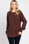 A solid maternity midi dress with puff sleeves, v-neckline and tassel tie detail and ruffle hem.