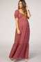 A sleeveless maternity dress featuring a solid hue, a rounded neckline, and ruching on the sides for a form-fitting silhouette.