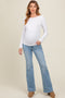 A solid long sleeve maternity sweater with dolman sleeves and two small side slits.