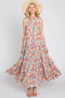 A solid maxi dress featuring functioning front buttons, a collar, two front pockets, cuffed short dolman sleeves, and a hi-low rounded hemline.