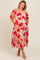 Red Floral V-Neck Short Puff Sleeve Tiered Maternity Plus Midi Dress