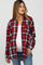 A plaid print maternity top featuring an oversize fit, front buttons, long sleeves and a collared neckline.
