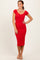 Red Ribbed Wide Neckline Fitted Midi Dress