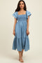 Royal Blue Floral Bold Print Cotton Maxi Dress
