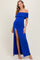 Royal Foldover Off Shoulder Ruched High Slit Maxi Dress