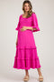 A mesh off shoulder maternity midi dress featuring mesh sleeves, and a ruched body.