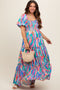 Details A textured maternity midi dress featuring a v-neckline, half-length sleeves, and a tiered skirt. Dress is lined 3/4 of the way down. Content + Care