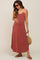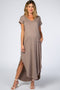 A solid basic maternity midi dress with adjustable straps, round neckline and rounded hem.