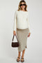 A pattern knit maternity sweater featuring a rounded neckline and long sleeves.