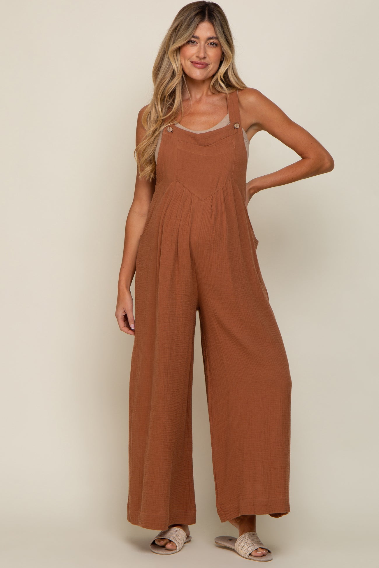 Rust Pocket Front Maternity Wide Leg Jumpsuit