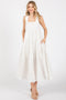 A sleeveless textured maternity dress featuring side pockets, a rounded neckline and a back keyhole cutout with a button closure.