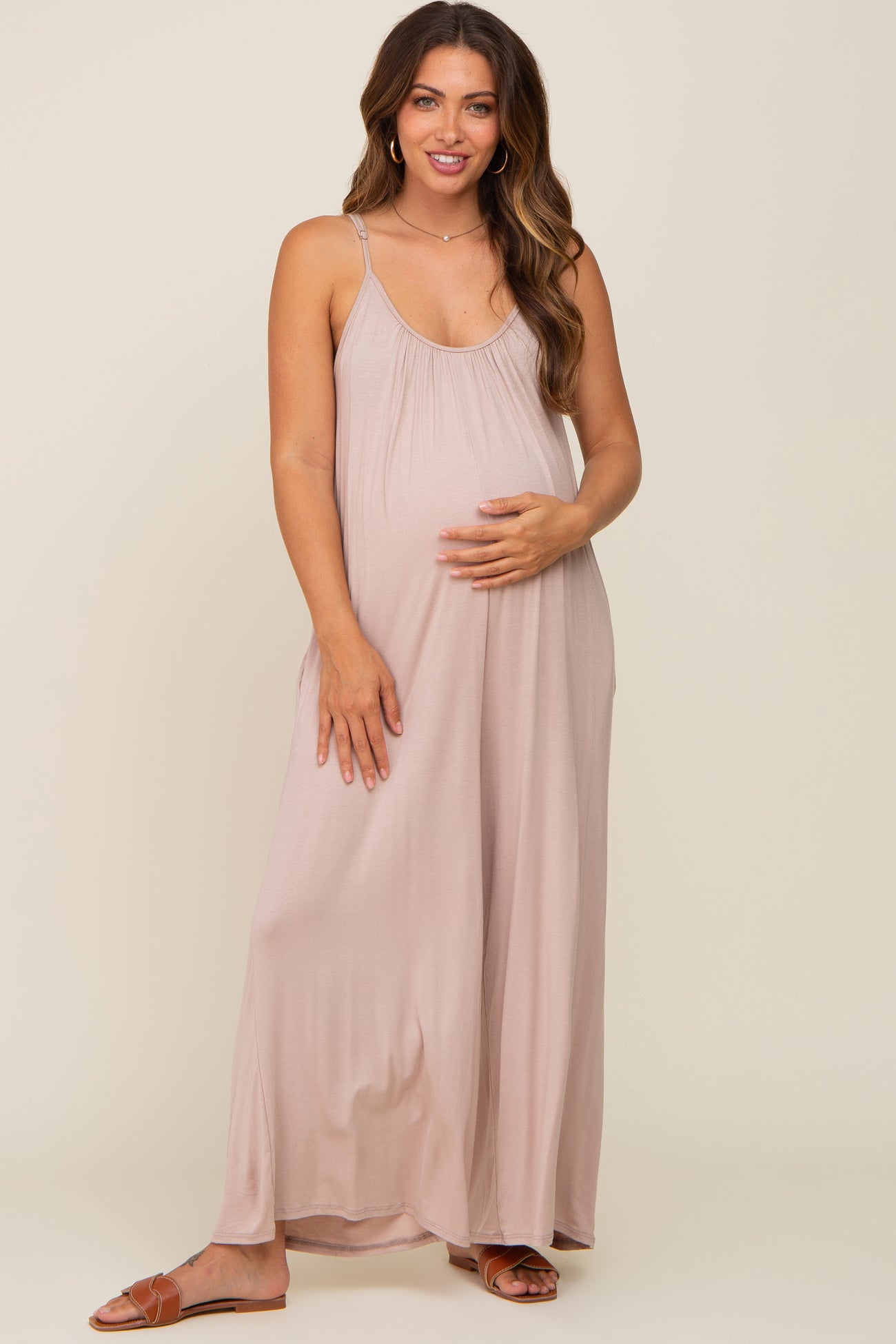 Taupe Basic Cropped Wide Leg Maternity Jumpsuit