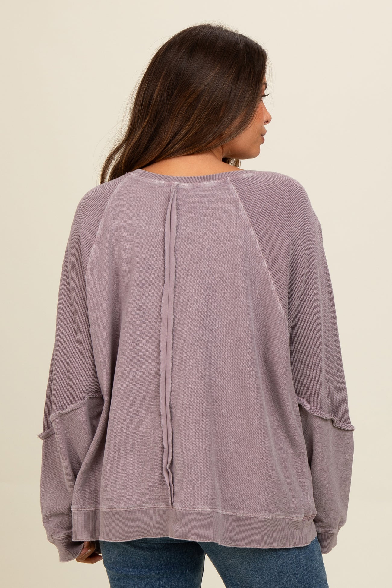 Taupe Mixed Knit Raw Hem Maternity Pullover Top