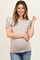A ribbed maternity top featuring short puff sleeves with a ruffle trim and a rounded neckline.
