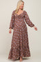 Teal Floral Square Neck Smocked Maternity Midi Dress