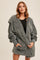 Teal Grey Fuzzy Hooded Long Sleeve Jacket