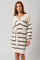 White-Black Striped Knit Collared Long Sleeve Sweater Dress