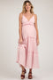 A floral maternity maxi dress with an off the shoulder neckline, a flounce tie, and elastic under the bust. Dress is fully lined.