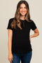 A solid maternity shirt with long sleeves, and a v-neckline.