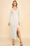 White Pointelle Contrast Trim Sweater Midi Dress