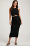 A ribbed maternity top featuring short puff sleeves with a ruffle trim and a rounded neckline.